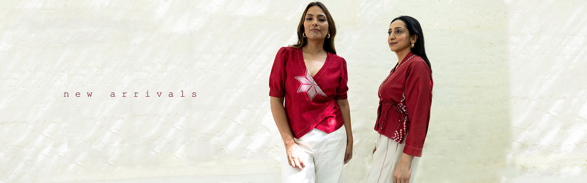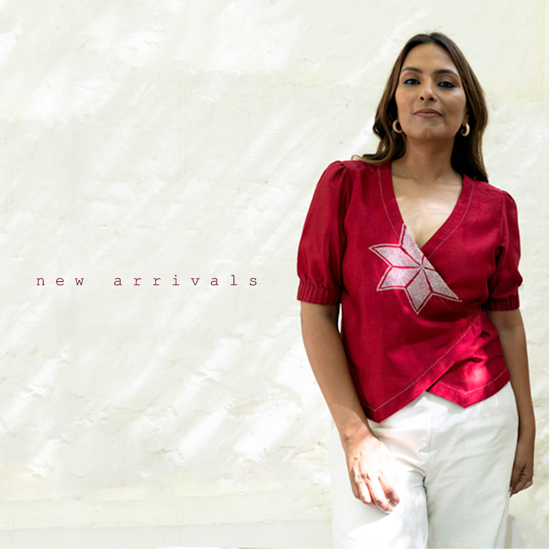 RED COLLARED SHIRT WITH OVERLAPPING PLACKET
