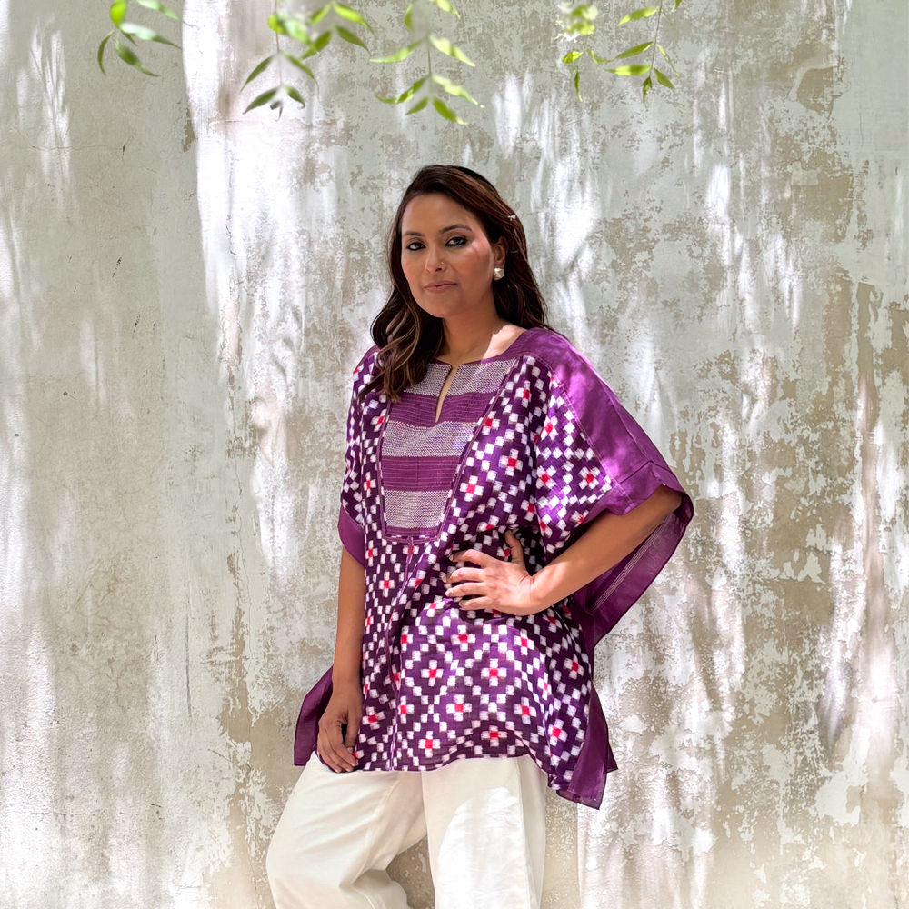 PURPLE IKAT KAFTAN WITH CHEVRON PATTERN IN YOKE